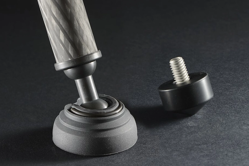 Para lograr la máxima solidez y estabilidad sobre cualquier clase de superficie, los trípodes Systematic están equipados con nuevos y ultra estables pies de gran tamaño. Estos pies se pueden extraer y reemplazar por pies de goma de tamaño estándar (también incluidos de serie con el trípode), o pies y pinchos opcionales