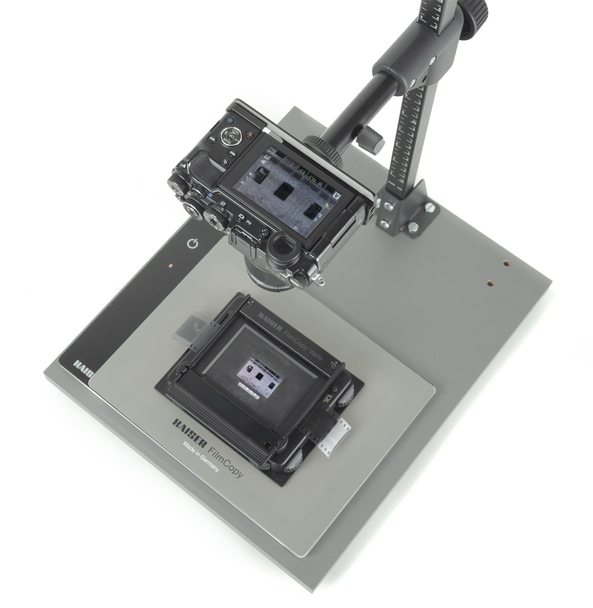 Este Kit completo es perfecto para iniciarse en la digitalización de diapositivas y negativos de 35 mm con tu smartphone o con cámara digital con objetivo macro 1:1 (hasta un peso máximo de 1kg). Mediante accesorios opcionales, se pueden usar también diversos formatos de película hasta 6 x 9 cm.