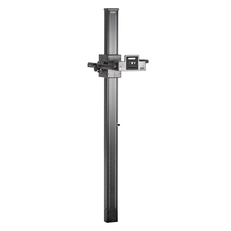 Columna del sistema profesional de reproducción rePRO. Brazo de cámara equipado con ajuste de altura motorizado, con control mediante PC/portátil (Windows) o mediante control remoto por cable. Las posiciones de altura se pueden almacenar y recuperar con una precisión de repetición de aproximadamente 1/100 de milímetro. Incluye el programa de control “Kaiser autoDrive”.