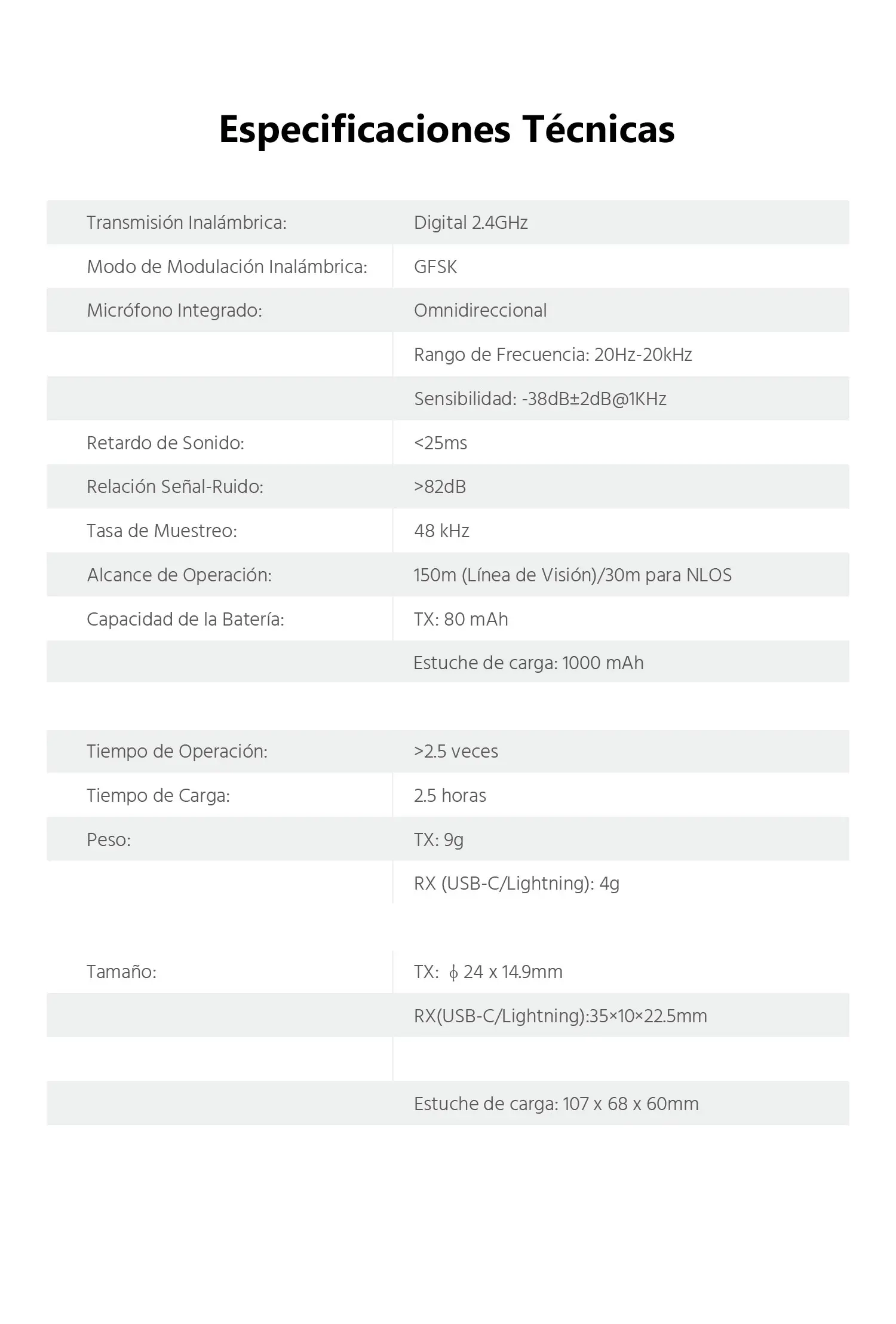 Con solo 9 g y 24 mm, el transmisor es extremadamente pequeño y fácil de llevar. Ideal para creadores de contenido, videógrafos, periodistas, podcasters y streamers que necesitan movilidad total sin sacrificar calidad.