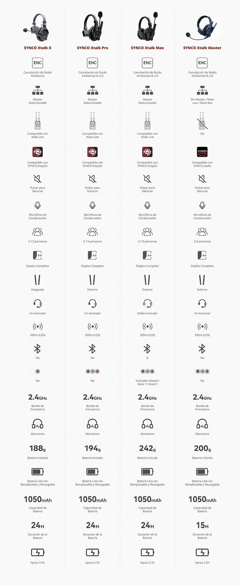 Tabla Comparativa Intercomunicadores SYNCO Xtalk