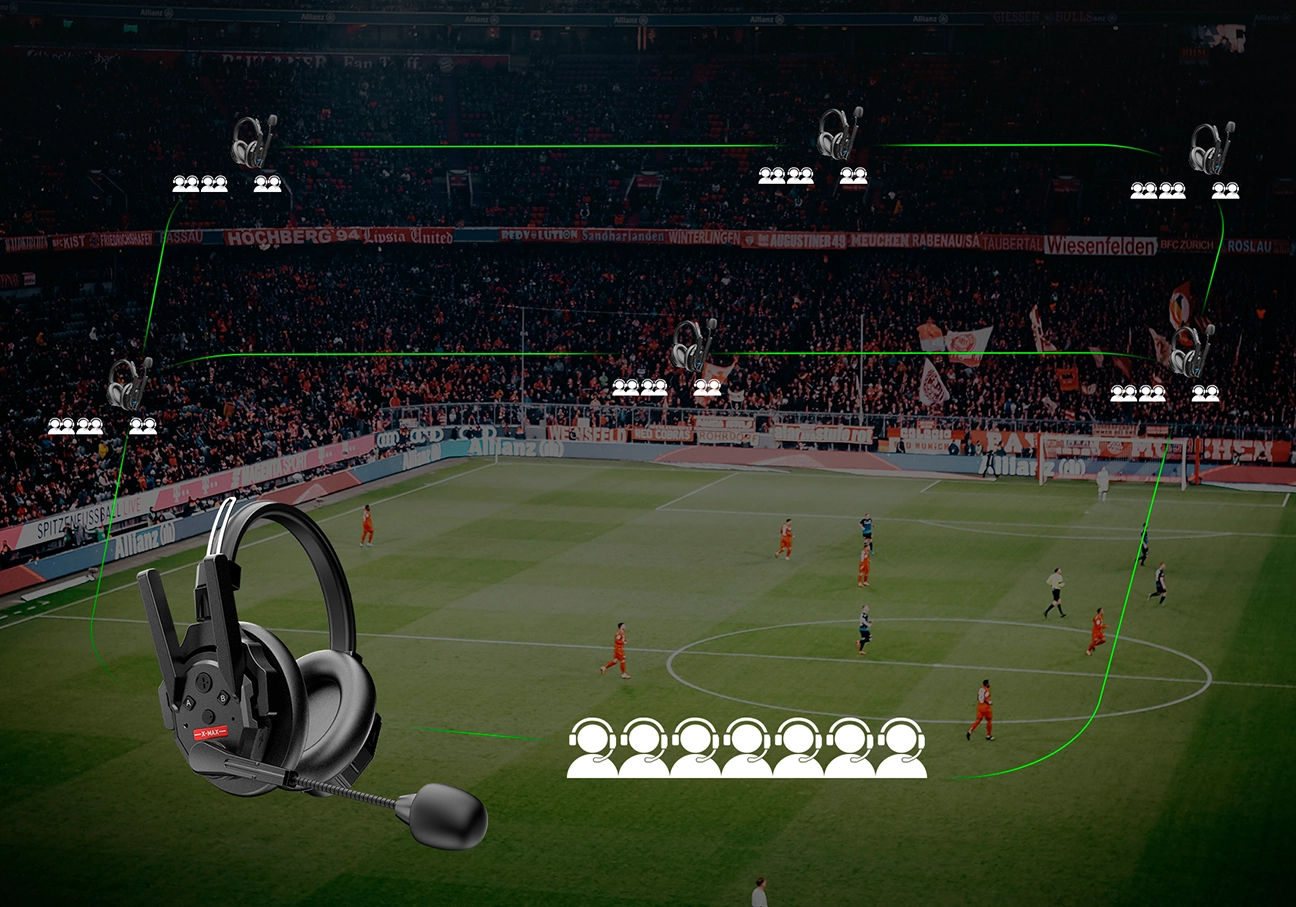 El algoritmo SYNCO MasterFree elimina la dependencia de un único auricular master. Cualquiera de los auriculares puede asumir ese rol, evitando interrupciones por batería baja y permitiendo crear grupos flexibles de hasta 13 usuarios. Para equipos pequeños, el sistema permite una comunicación dinámica sin master dedicado, simplificando el flujo de trabajo.