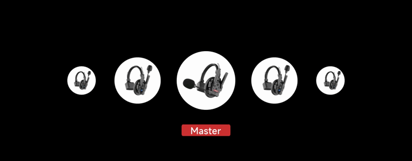 Con el algoritmo SYNCO MasterFree, cualquier auricular puede configurarse como master. Esto elimina puntos críticos y problemas por batería baja, y permite crear grupos de trabajo de forma flexible y segura, adaptándose fácilmente a cada producción.