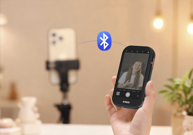 La conectividad inalámbrica P2P elimina la necesidad de WiFi o redes externas. Además, los monitores incluyen disparador remoto Bluetooth con un alcance de hasta 10 metros, ideal para fotos de grupo, vlogs con cámara gran angular o tomas creativas sin tocar el teléfono.