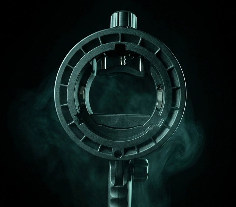 Cuenta con inclinación de casi 180° y conexión estándar de 5/8”, facilitando su montaje en pies de estudio y soportes profesionales.